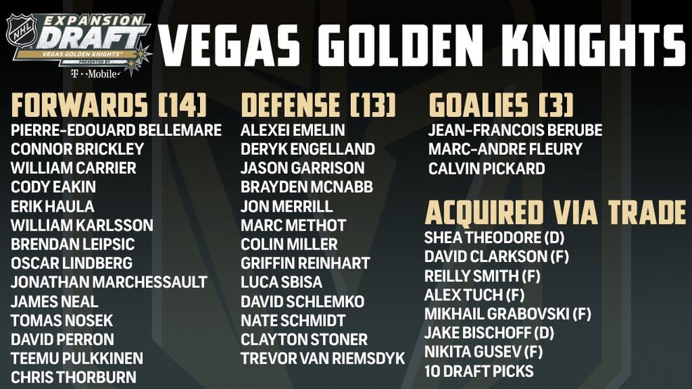 As an aspiring General Manager, watching the work of Golden Knights President of Hockey Operations George McPhee, and General Manager Kelly McCrimmon over this six-year period has been nothing short of inspiring. The high frequency of bold moves and decision-making of this tandem, although uncommon, may encourage other teams to follow suit throughout the foreseeable future. To me, it appears that the duo was willing to do whatever it took to help the club win games since the very beginning, as the expansion draft strategy of accumulating draft picks and other assets for the sole purpose of trading for significant pieces of this championship core only made this more apparent. Very rarely in today’s NHL do we see a management group formulate a six-year plan, apply it, and deliver the results the Golden Knights have. Starting with the actual expansion draft, six players of the original Vegas Golden Knights team remain as part of the Stanley Cup Championship core (Jonathan Marchessault, Reilly Smith, Brayden McNabb, Shea Theodore, William Karlsson, and William Carrier). The post-expansion draft Golden Knights roster is depicted below for reference.