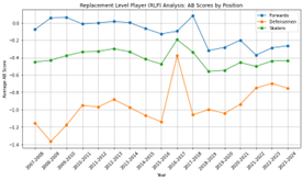 Conversely, players with persistently low AB Scores present tangible challenges for their teams. Their inability to meet replacement-level contributions may stem from repeated mistakes, poor positional awareness, or inefficiencies in execution. The histogram’s lower tail, representing these underperformers, underscores the importance of roster management decisions focused on either improving their play or replacing them entirely. For instance, teams struggling with depth issues on their bottom-six forwards or third-pairing defensemen can use AB metrics to identify specific players whose removal or improvement could significantly impact team results.
