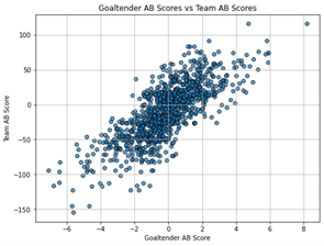 When analyzing championship-winning rosters, the results were unmistakable: Stanley Cup teams consistently have higher AB Scores than their non-championship counterparts. The correlation between Total AB Score and Mean Wins underscores that constructing a high-AB roster is the single most predictive factor of long-term success. This conclusion was supported by Spearman’s rho calculations and regression analysis, which validated the AB framework’s ability to predict team performance with statistical rigor. The impact of goaltending on AB-based success was also evident, as elite goaltenders with high AB Scores had direct correlations with team wins, further proving that mistake minimization is critical even at the most isolated position on the ice. This research has shown that an effective team is not simply built around star players, but rather a cohesive, strategically assembled unit that maximizes collective AB contributions.